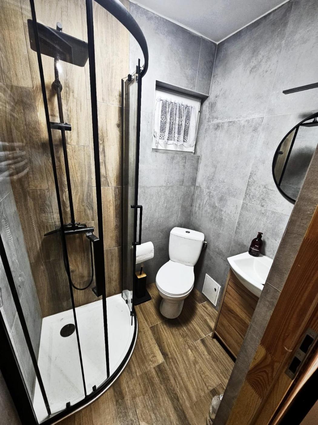 Dom z 3 sypialniami. The fireplace is the standout feature of this holiday home. Boasting a private entrance, this holiday home comes with 1 living room, 3 separate bedrooms and 1 bathroom with a shower. Guests will find a stovetop, a refrigerator, kitchenware and an electric kettle in the well-fitted kitchenette. The holiday home also includes a barbecue. Featuring a terrace, this holiday home also features a seating area, a dining area and a flat-screen TV. The unit has 7 beds. Dom wakacyjny - 8 osobowy. Powierzchnia pokoju ok.: 8 mkw.